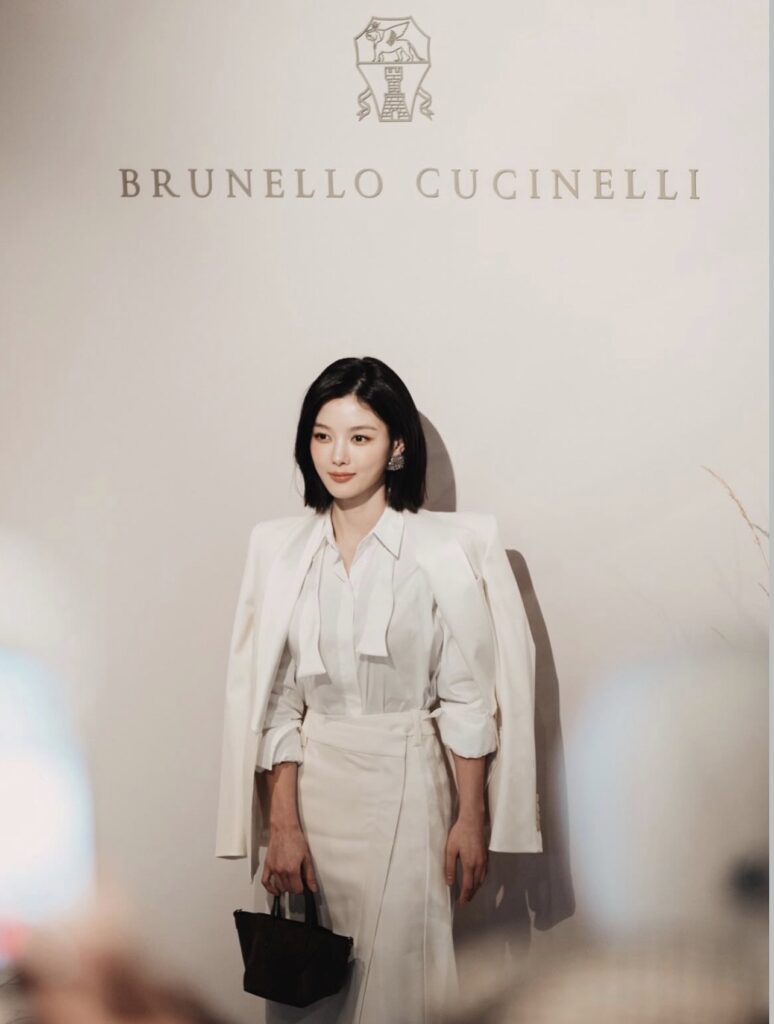 A atriz Kim Yoo-jung compareceu ao desfile da Brunello Cucinelli como representante da elegância atemporal. A escolha por alfaiataria suave e paleta neutra traduziu com precisão o luxo silencioso que define a marca.