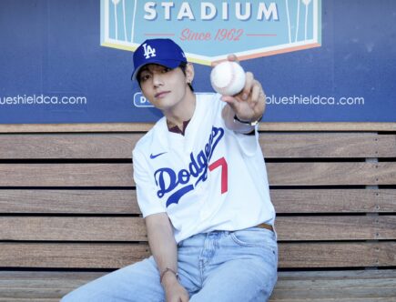 Vestindo uma camisa do Dodgers com o número 7 nas costas, o artista entrou no campo sob aplausos estrondosos.