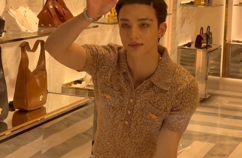 Durante a passagem do Stray Kids por Nova York, o integrante Hyunjin aproveitou a folga de hoje (17) para visitar a loja da Versace, marca pela qual foi nomeado não apenas embaixador, mas também príncipe.
