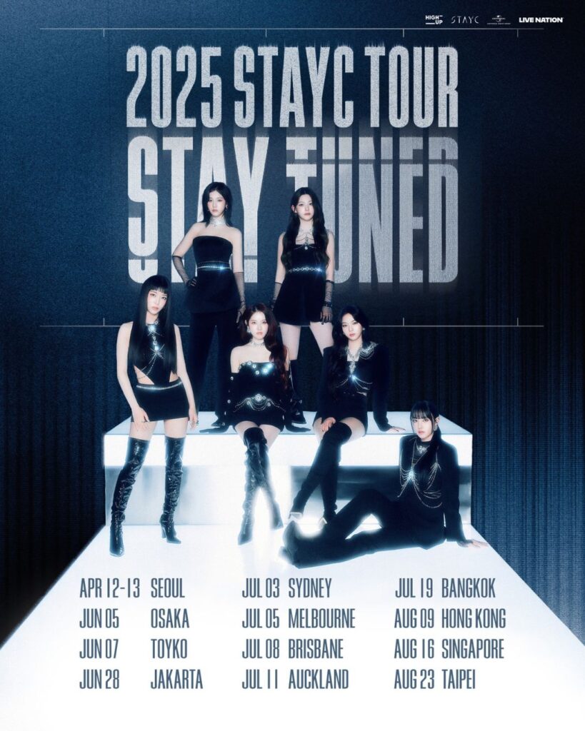 No dia 24 de março, o grupo feminino STAYC revelou as datas e locais de sua nova turnê mundial, intitulada “STAY TUNED”, prevista para 2025. A série de shows começa em Seul, com duas apresentações nos dias 12 e 13 de abril, antes de seguir para diversas cidades da Ásia e Oceania.