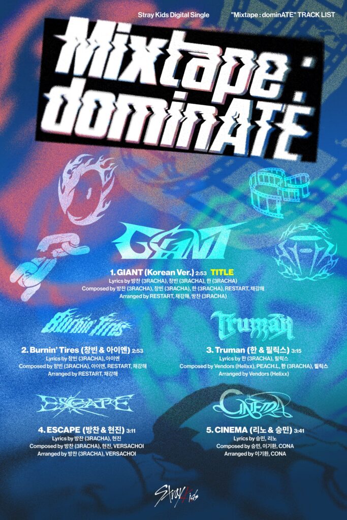 – “Burnin’ Tires” (Changbin e I.N): A dupla une o rap explosivo de Changbin, conhecido por suas rimas técnicas, aos vocais suaves de I.N, criando um contraste entre força e delicadeza. A faixa promete uma harmonia ousada, típica da identidade musical do grupo.